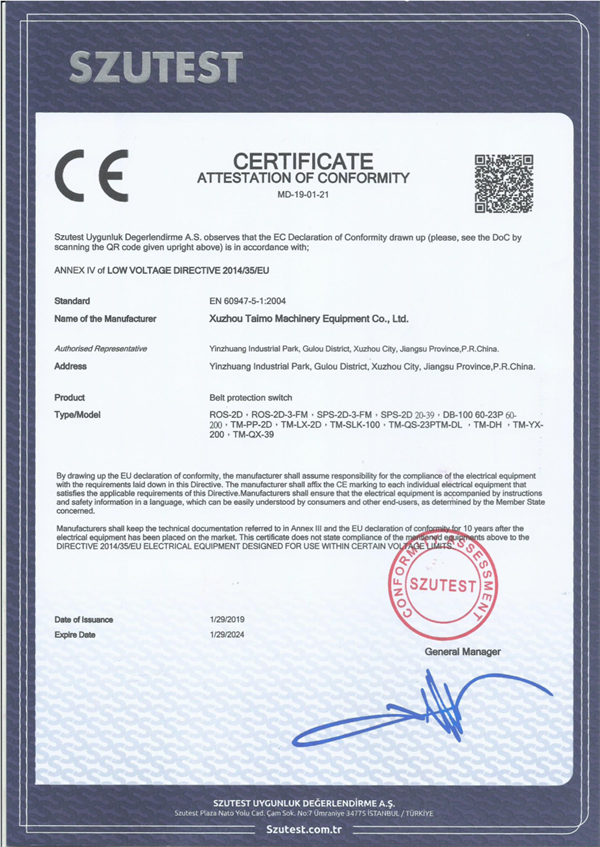 • 大連國際技術機械貿(mào)易公司定購了176臺SPS-2D拉繩開關